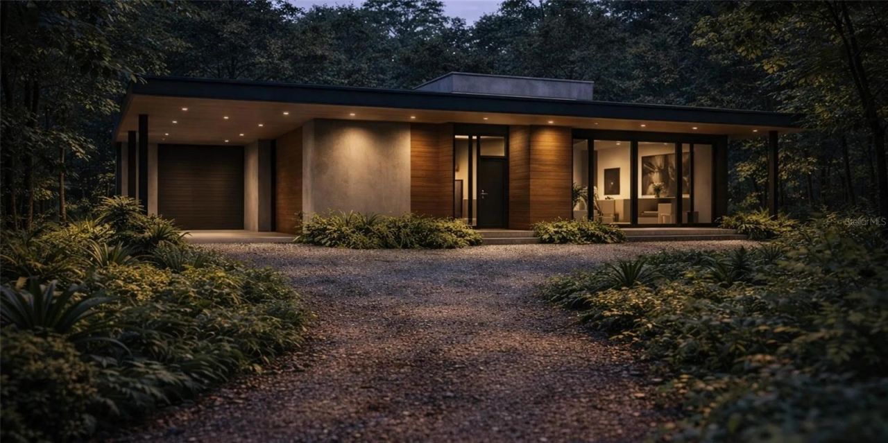 Refined in response to strong demand for the Hybrid concept, this design now features an expanded layout with enhanced indoor-outdoor living and greater flexibility.Thoughtfully designed as a modern retreat, the Hybrid emphasizes light, flow, and connection to its natural surroundings. The current configuration is based on approximately 1,300 square feet of living space, with a functional 3-bedroom, 2-bath layout that can be further tailored to suit a range of lifestyles-from full-time residence to seasonal retreat or investment property.Clean architectural lines, durable materials, and expansive impact-rated glazing create a seamless transition between interior and exterior spaces, bringing natural light throughout while framing the surrounding wooded landscape. Outdoor living remains a central focus, with the potential for integrated decks, terraces, and private exterior spaces.Located in Georgetown Cove near Lake George, this property provides privacy, access to nature, and convenient reach to both Florida coasts-well suited for a modern home designed around how you want to live.The original container concept remains available for other locations. This site is now aligned with the updated Hybrid design direction